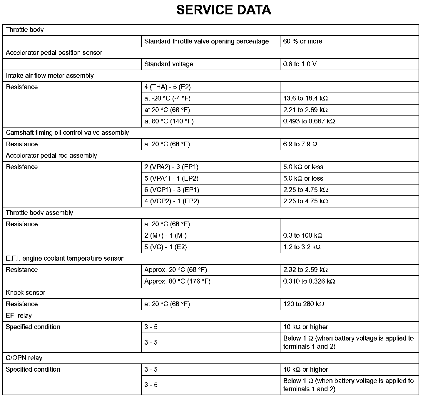 Engine Control System-Service Data: