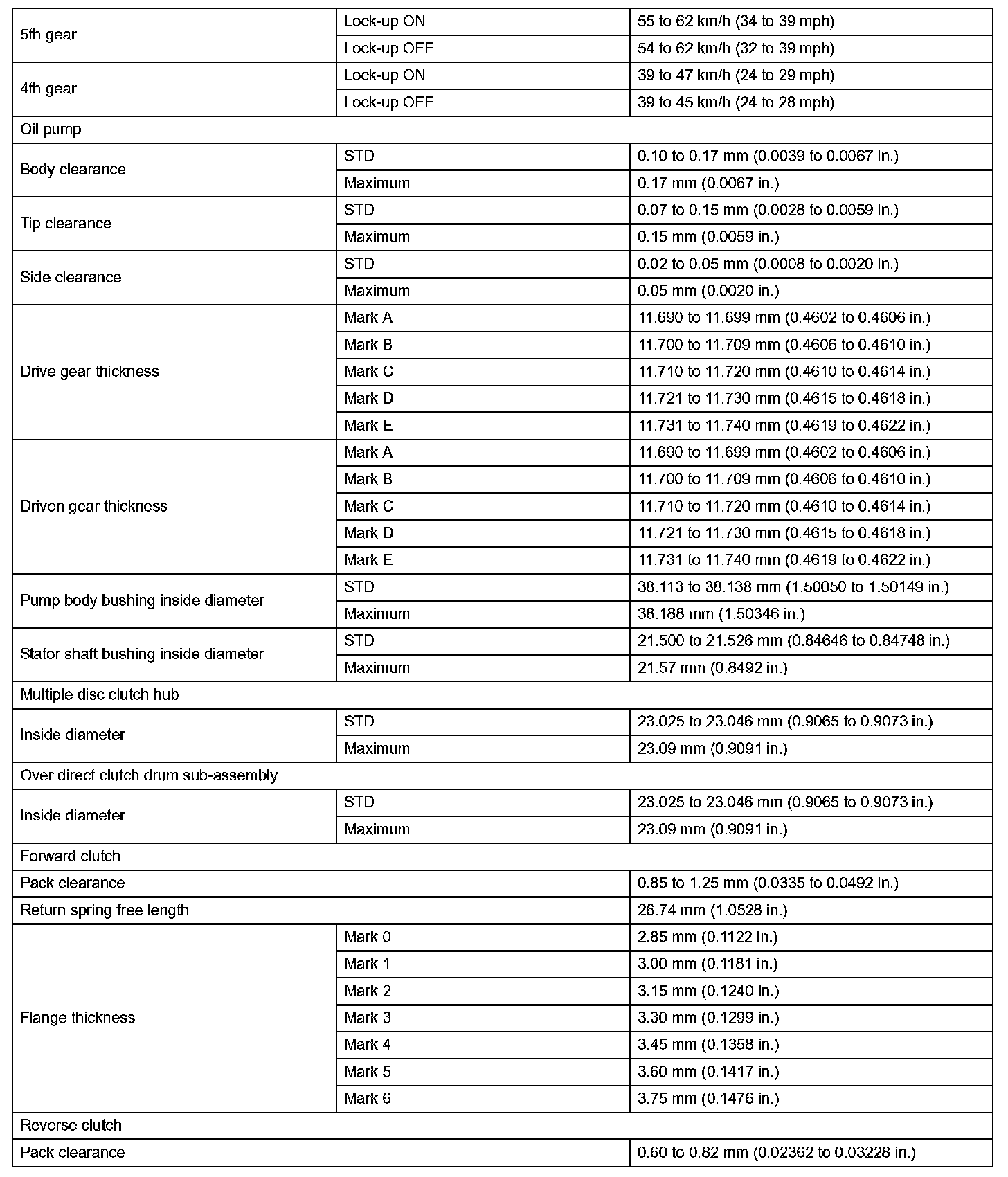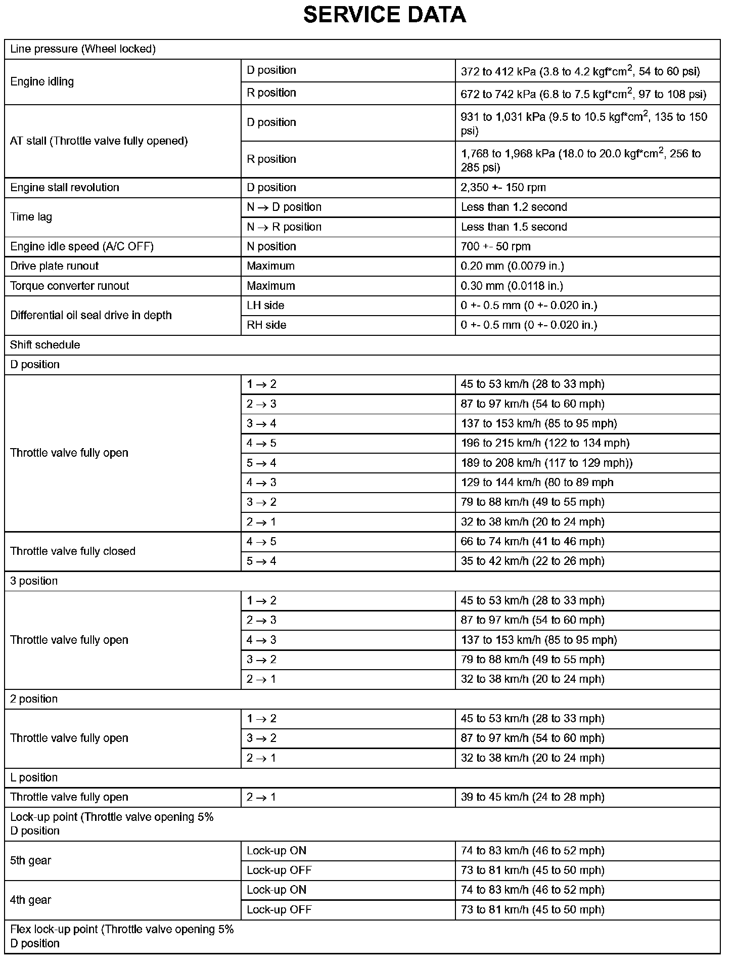 Automatic Transaxle-Service Data (Part 2):