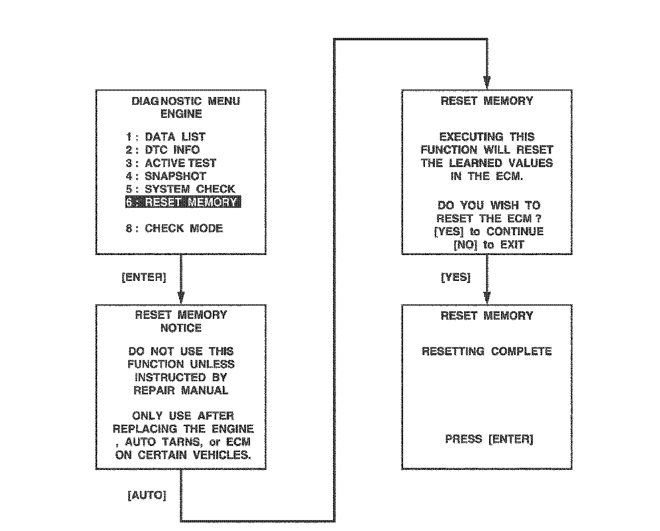 CAUTION: After performing the RESET MEMORY, be sure to perform the ROAD TEST described earlier. Road Test