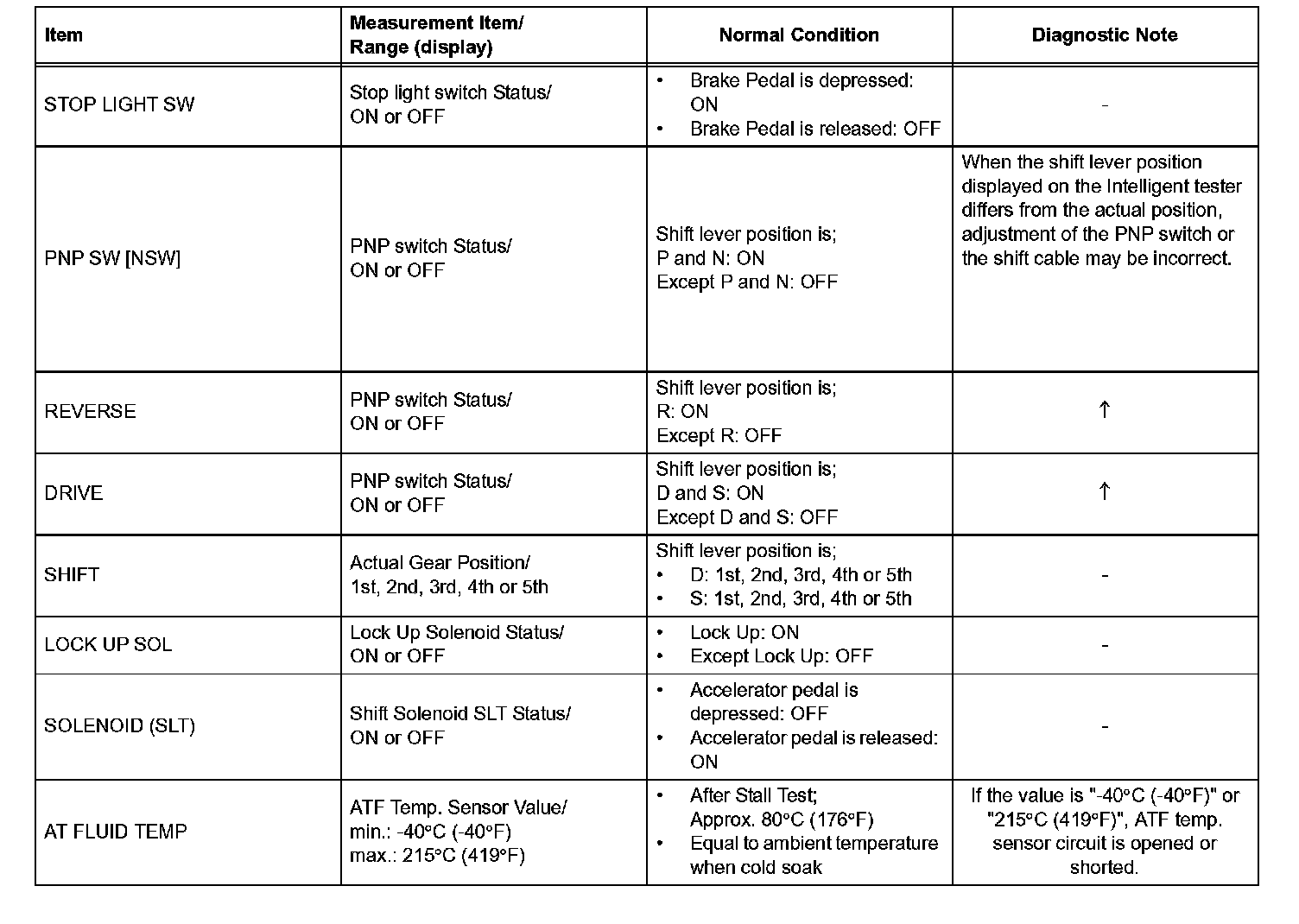HINT: According to the DATA LIST displayed by the intelligent tester, you can read the value of the switch, sensor, actuator and so on without parts removal. Reading the DATA LIST as the first step of troubleshooting is one method to shorten labor time.