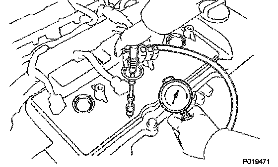 3 While cranking the engine, measure the compression pressure.