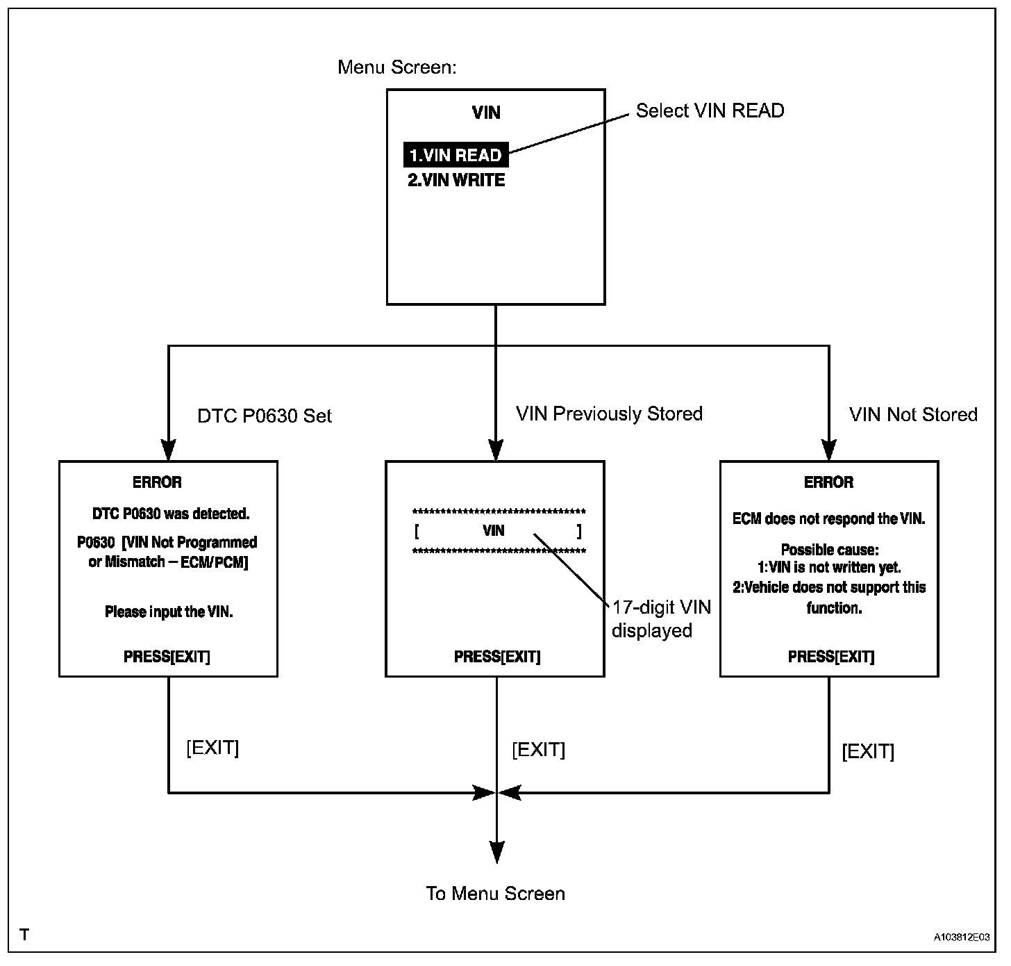 a. Explains the VIN reading process in a flowchart. Reading the VIN stored in the ECM is necessary when comparing it to the VIN provided with the vehicle.