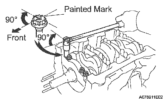 Main Bearing CapMark the front side of the bearing cap bolts with paint.