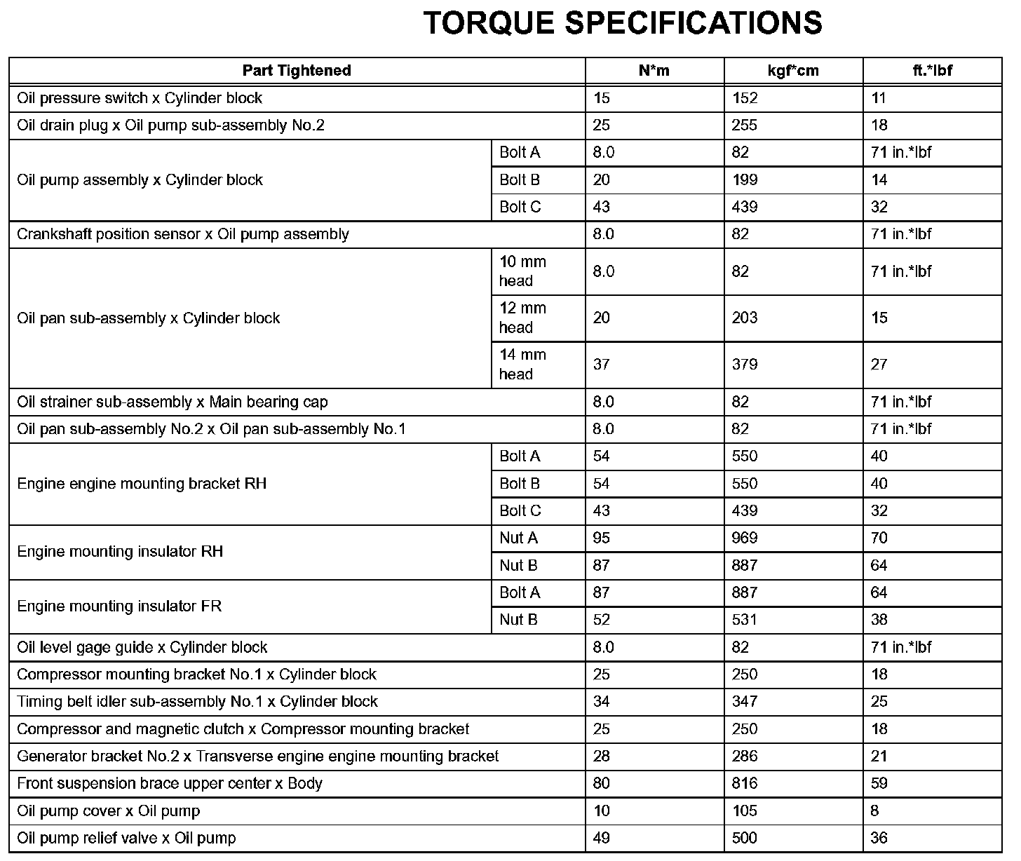 Lubrication-Torque Specifications: