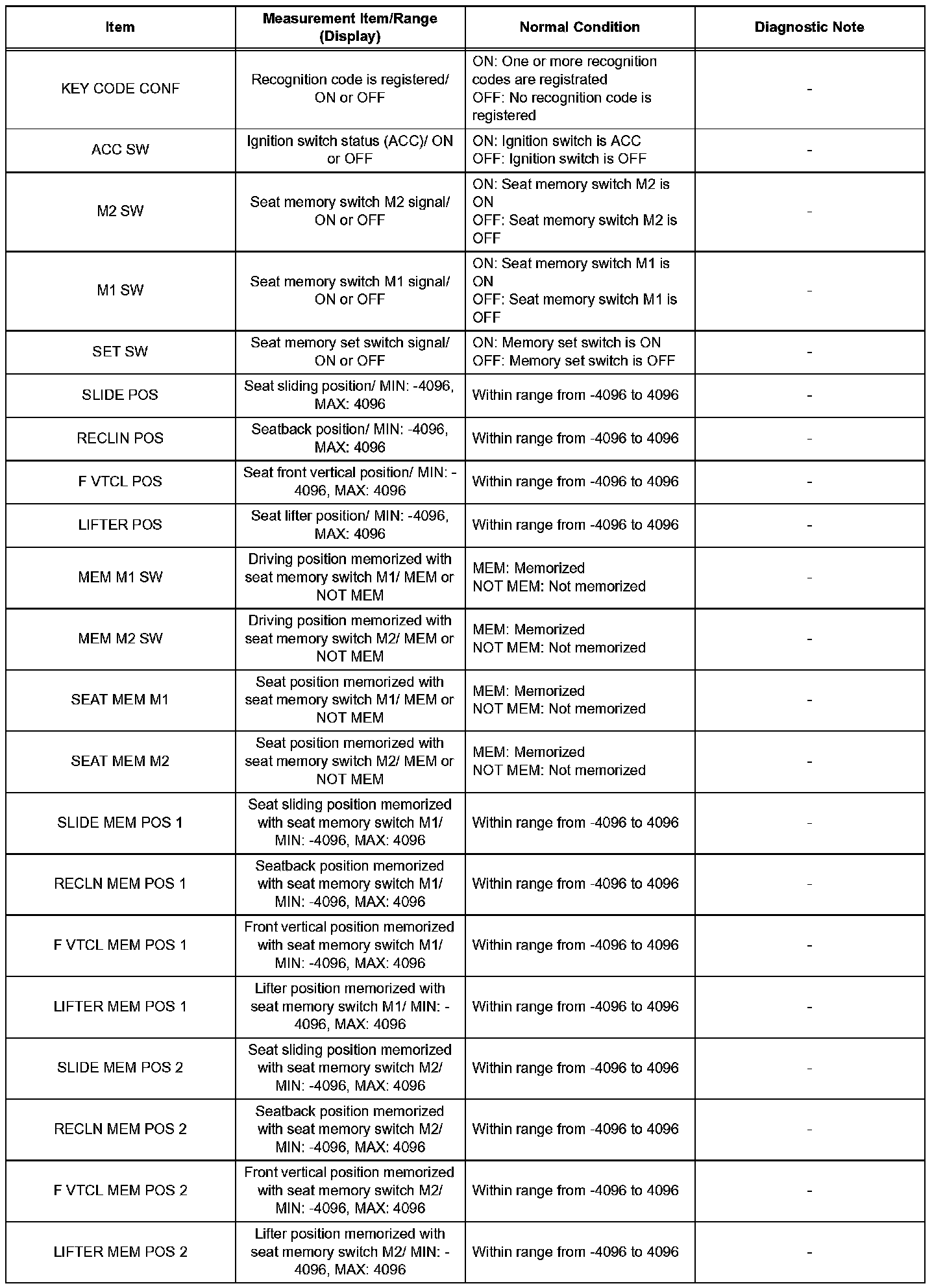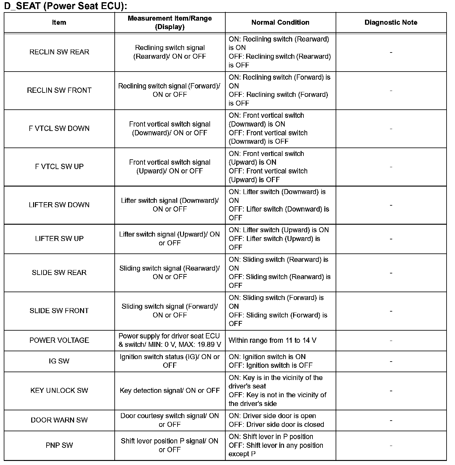 HINT: Using the intelligent tester's DATA LIST allows the status of a switch, sensor, actuator and other items to be read without removing any parts. Reading the DATA LIST early in troubleshooting is one way to save time.