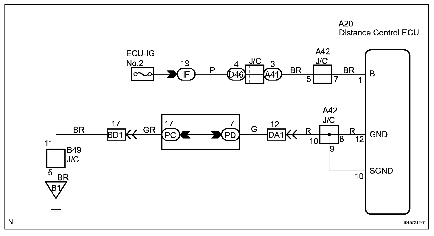 Distance Control ECU Power Source Circuit
