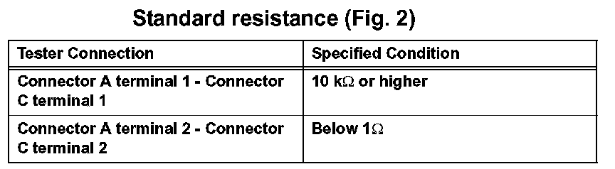1. Disconnect connectors A and C and measure the resistance between the terminals of the connectors.