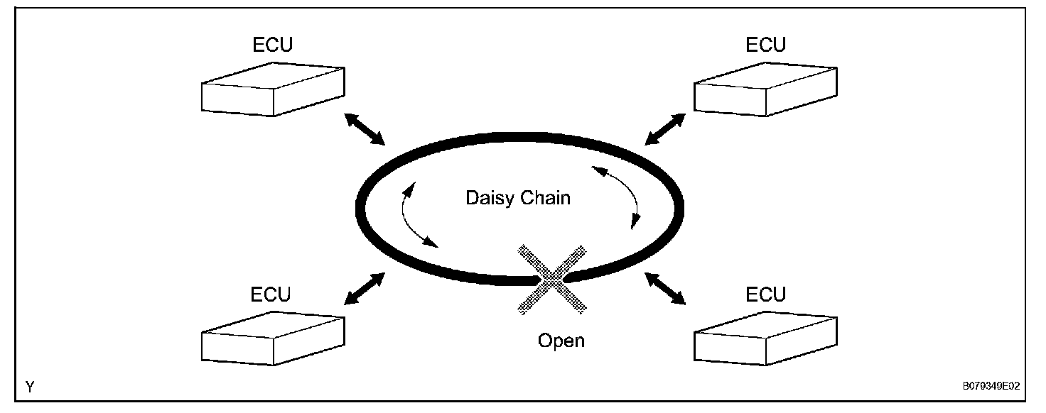 2. The BEAN uses ring and bus styles of networks to connect ECUs. This style of connection is called a daisy chain. In a daisy chain, communication can be maintained even if there is an area that has an open circuit.