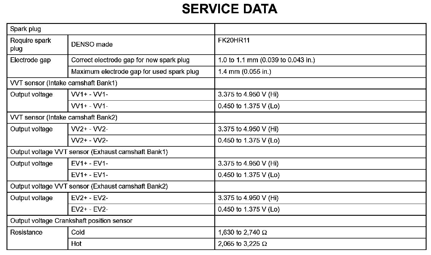 Ignition - Service Data: