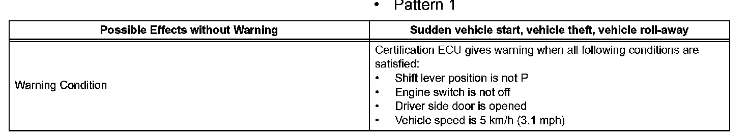 Pattern 2: Then the user holds the electrical key and tries to move away from the vehicle. In these situations, the given control is performed: