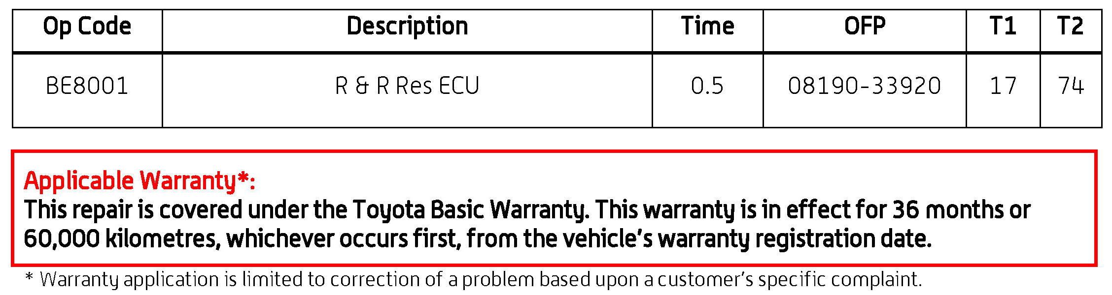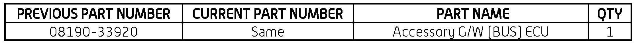 1. Order an exchange unit Gateway (BUS) ECU (P/N 08190-33920) from Fujitsu Ten (refer to WAB2063).