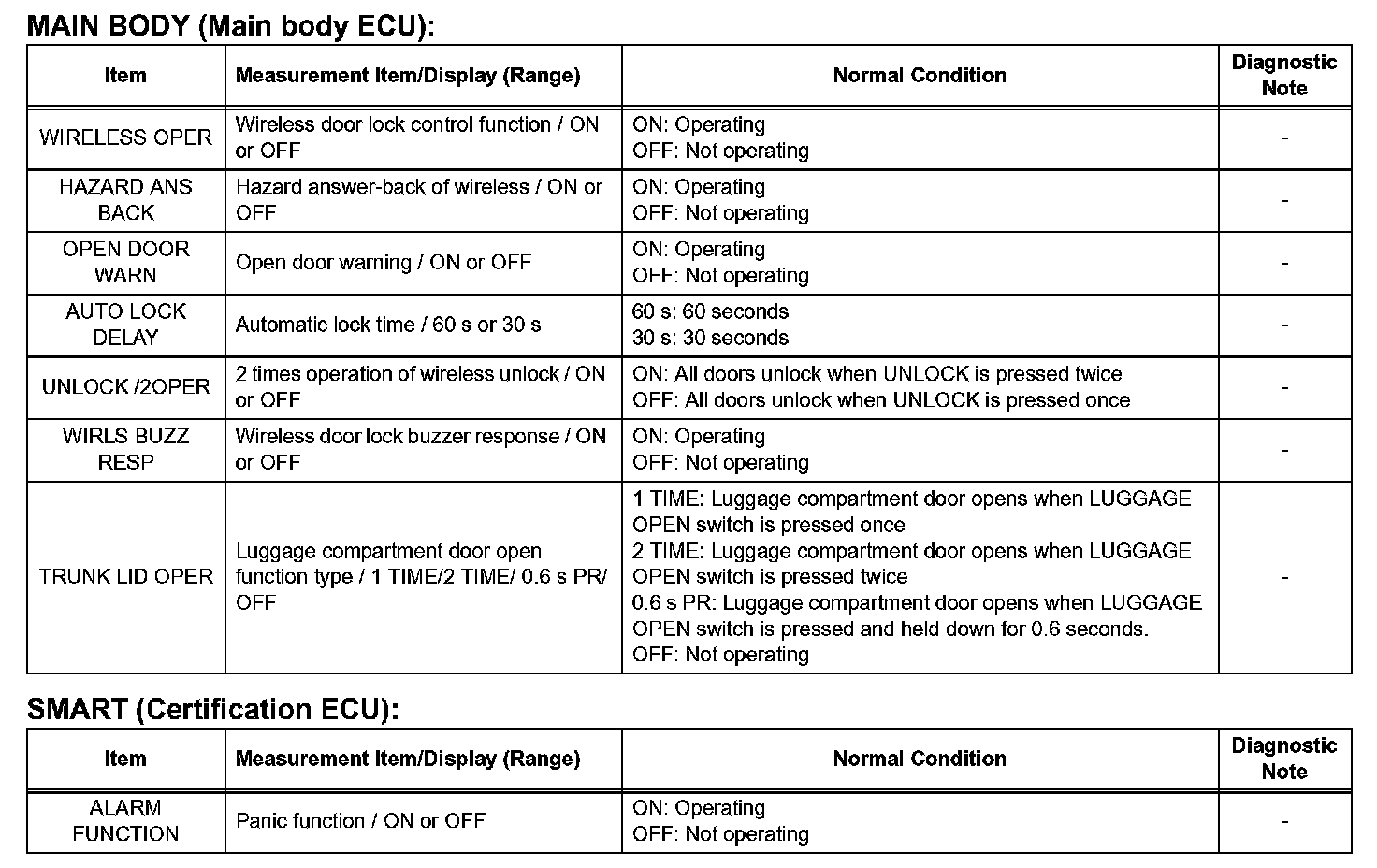DATA LISTHINT: Using the intelligent tester DATA LIST allows switch, sensor, actuator and other item values to be read without removing any parts. Reading the DATA LIST early in troubleshooting is one way to shorten labor time.