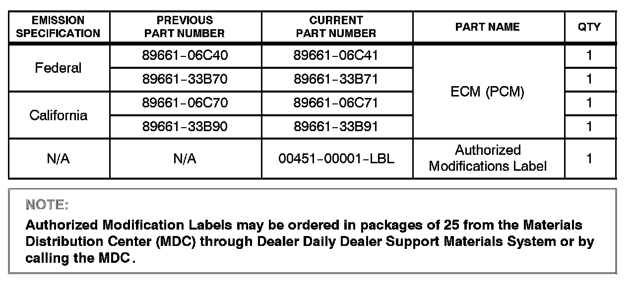 ^ Before proceeding, verify the ECM (PCM) calibration has NOT been updated by checking for the Authorized Modifications Label (shown in step 1 of the Repair Procedure).
