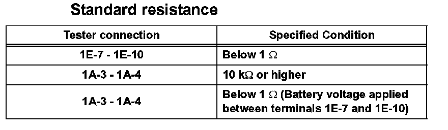 Using an ohmmeter, measure the resistance according to the value(s) in the table.