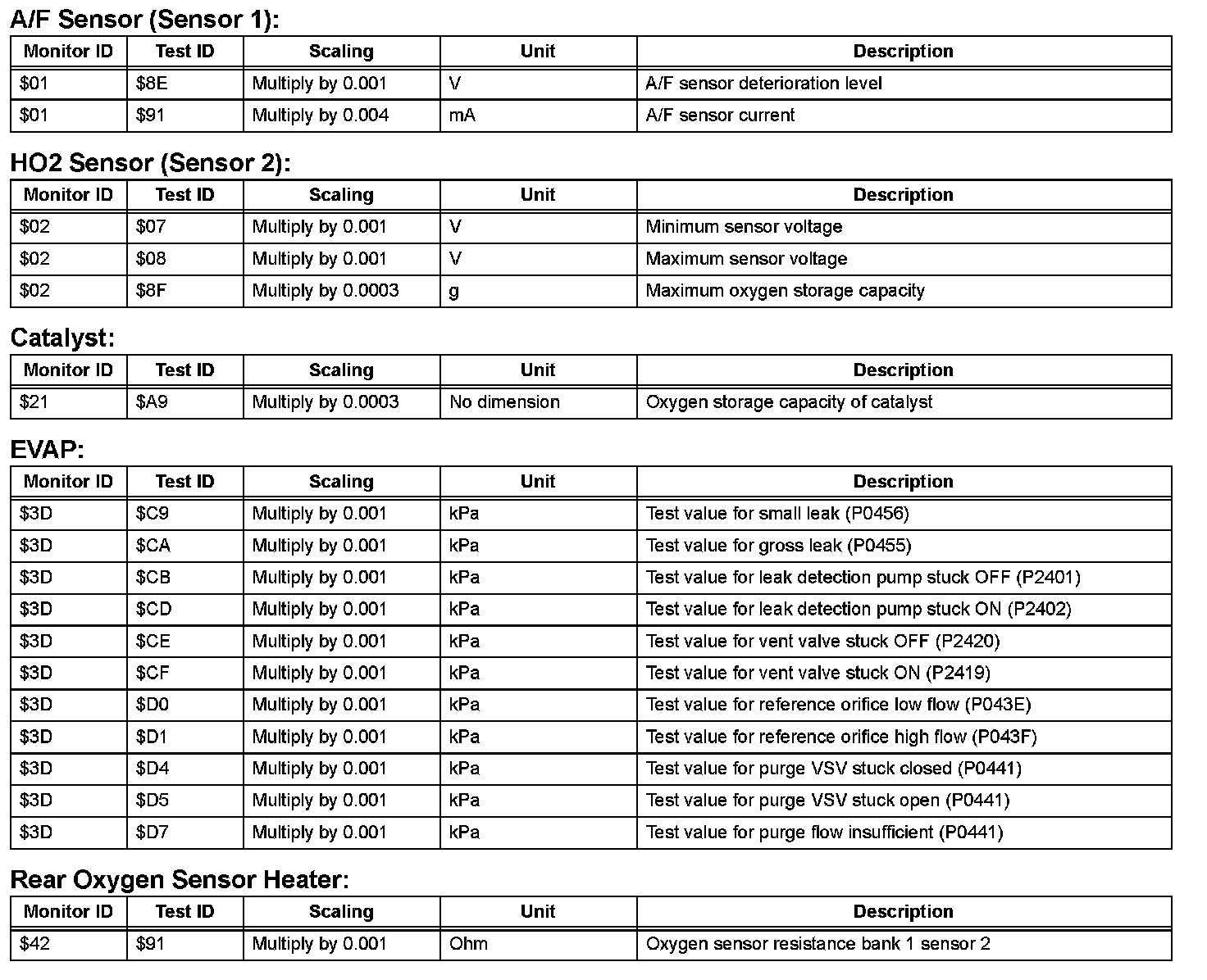 If you use a generic scan tool, multiply the test value by the scaling Value listed.