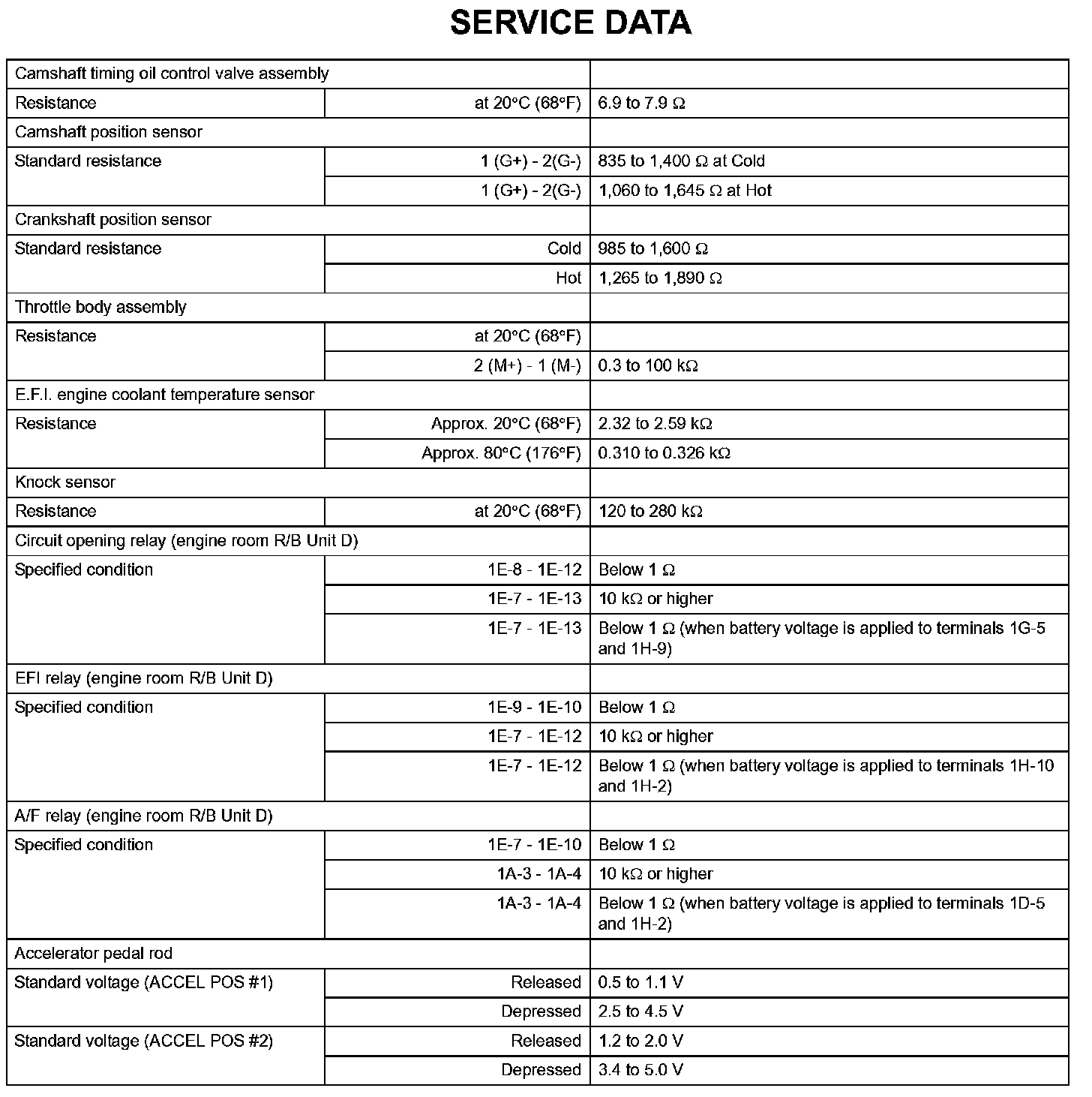 Engine Control System - Service Data: