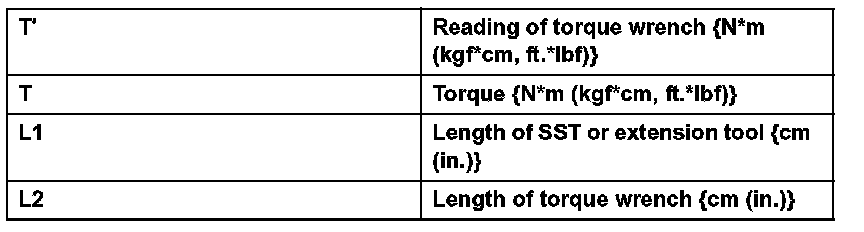 1. Use the formula below to calculate special torque values for situations where SST or an extension tool is combined with the torque wrench.