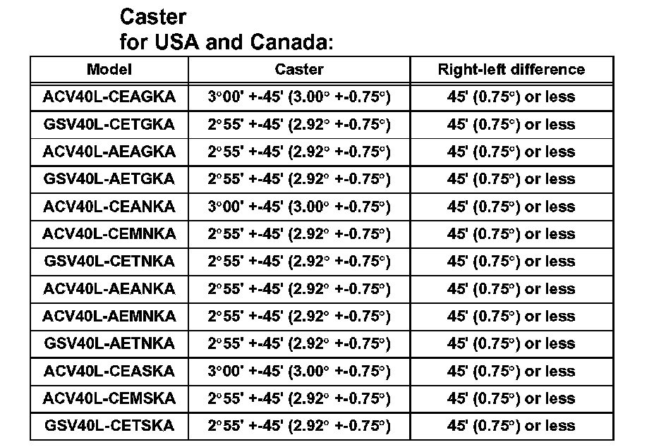 CAMBER, CASTER AND STEERING AXIS INCLINATION