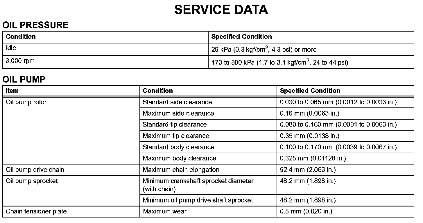 Lubrication - Service Data: