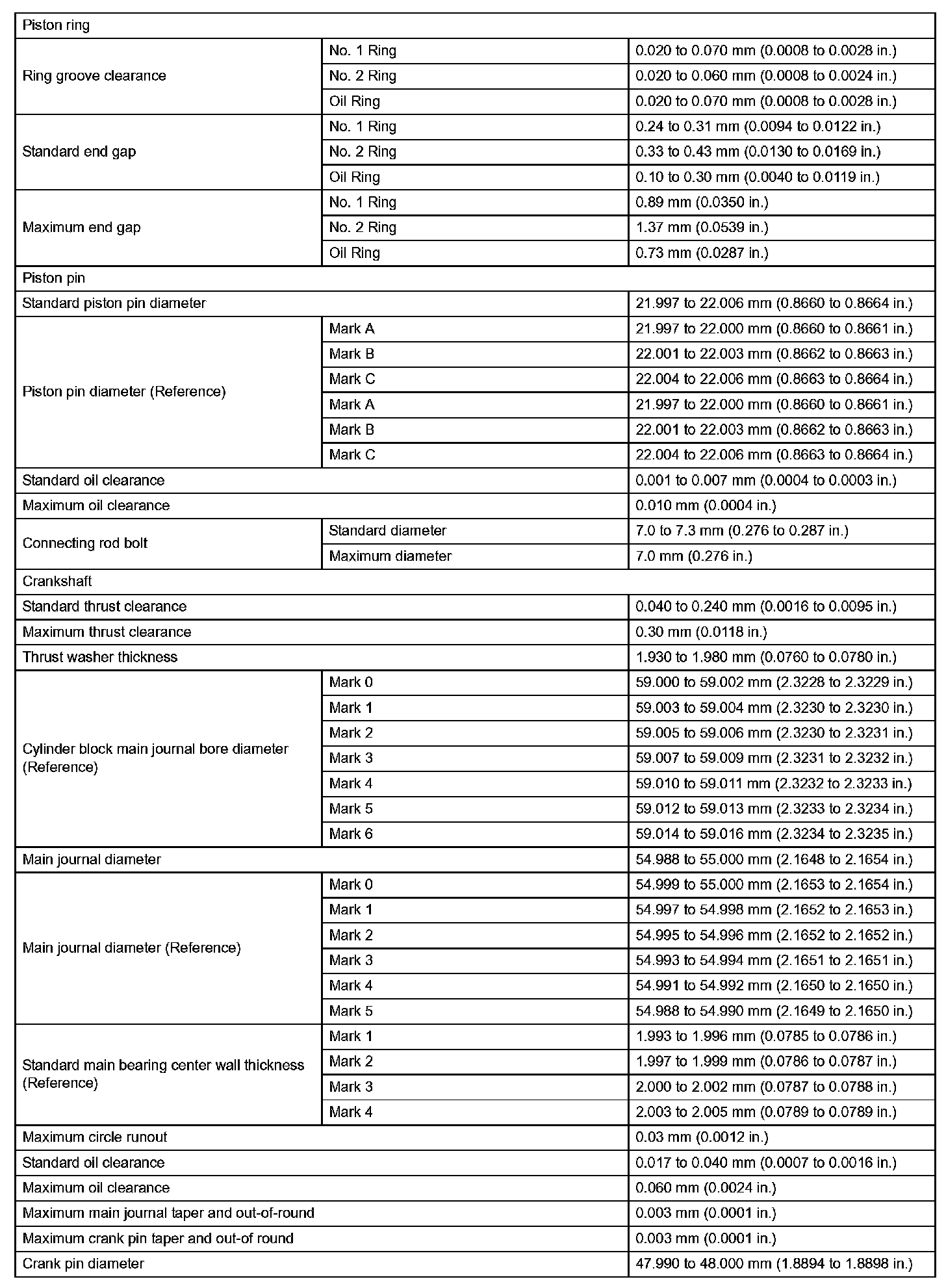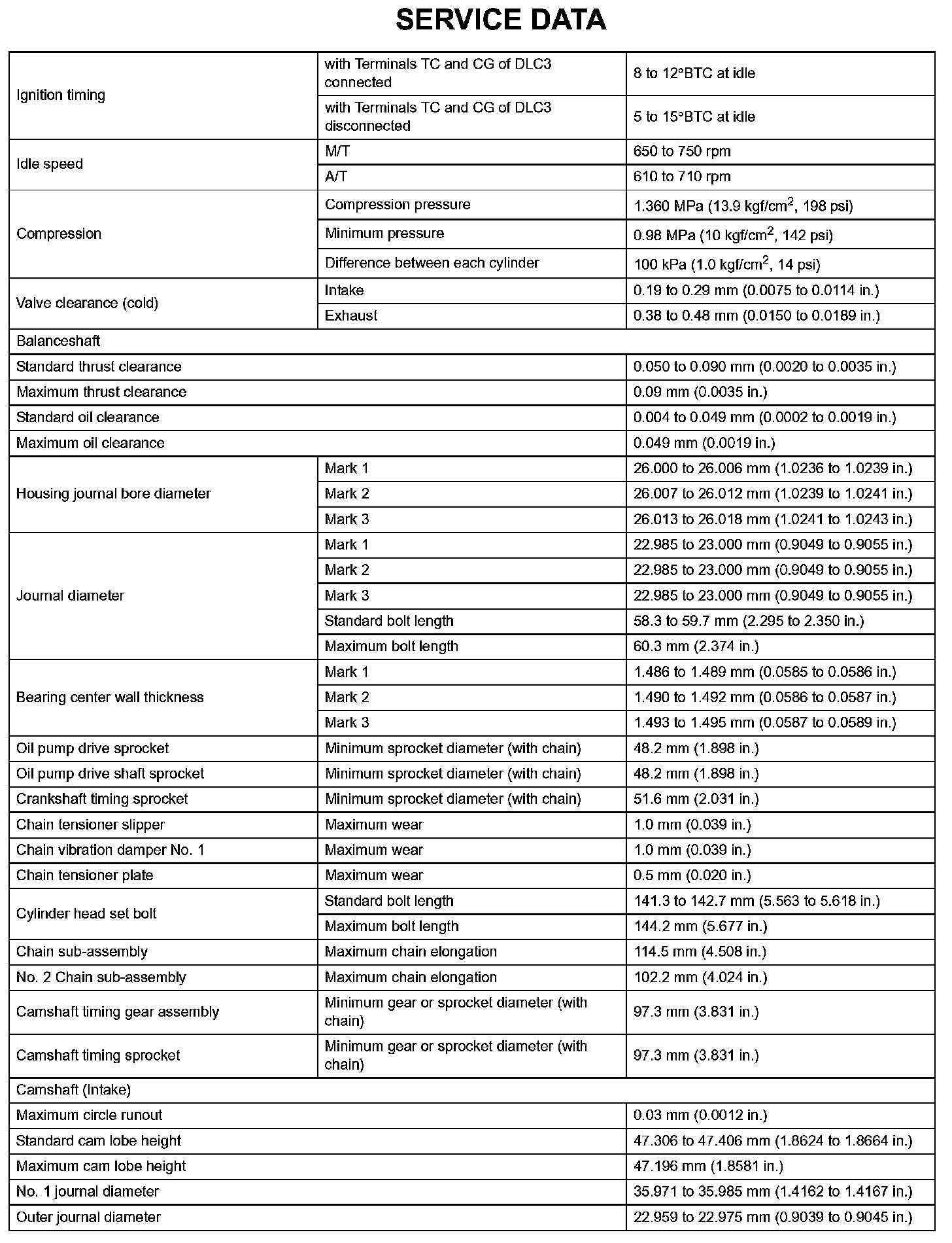 Engine Mechanical - Service Data (Part 1):