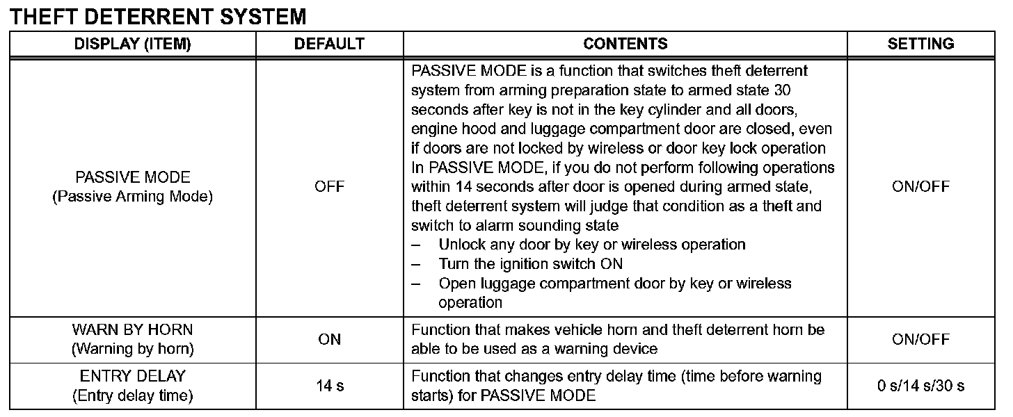 2. THEFT DETERRENT SYSTEM (w/o Smart Key System)