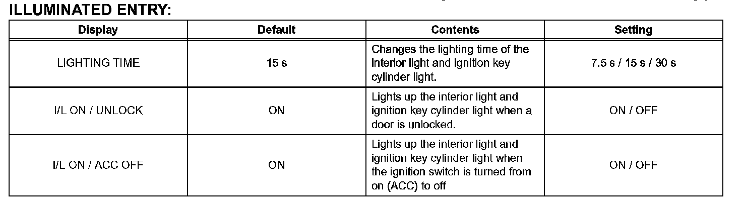 HINT: The function only changes the entry unlock mode of the smart key system. It does not switch the unlocking of the wireless door lock control.