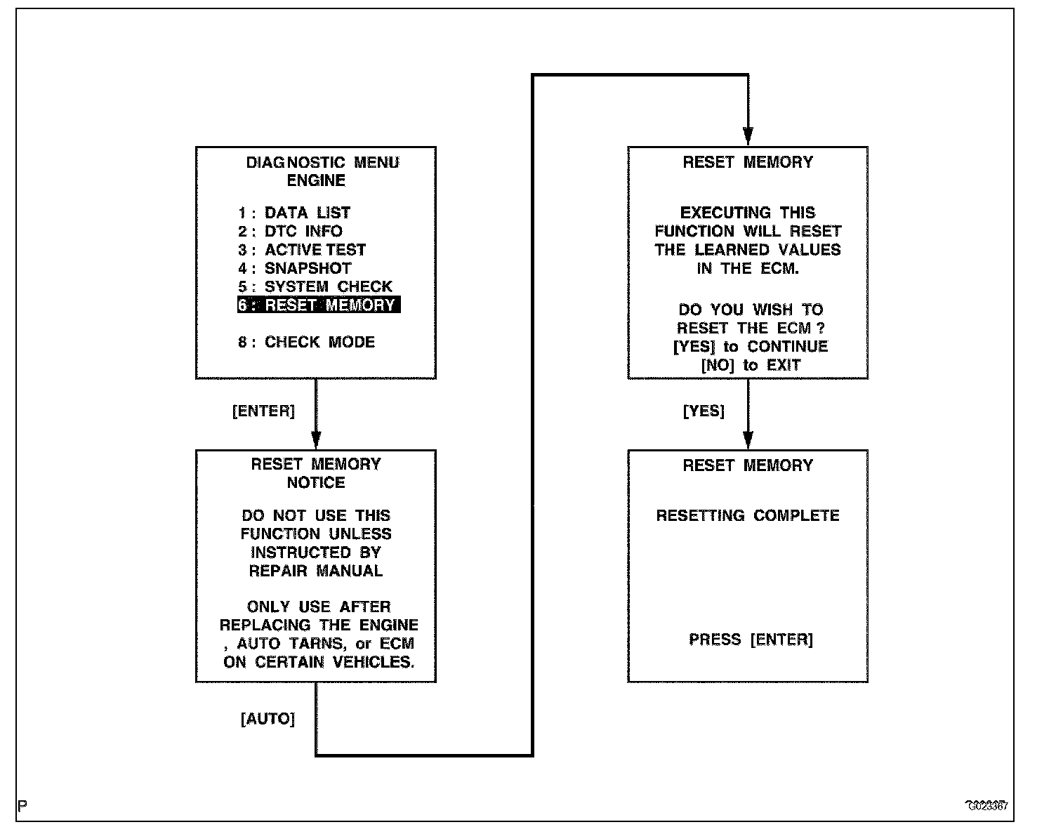 CAUTION: After performing the RESET MEMORY, be sure to perform the ROAD TEST described earlier.