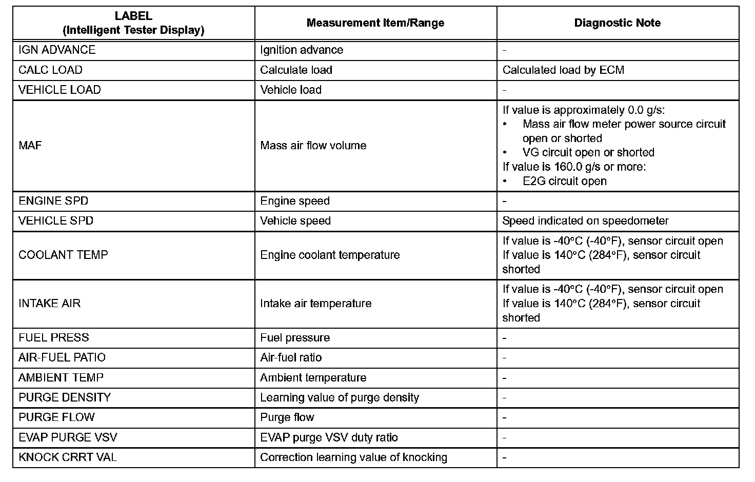 The ECM records vehicle and driving condition information as freeze frame data the moment a DTC is stored. When troubleshooting, freeze frame data can be helpful in determining whether the vehicle was running or stopped, whether the engine was warmed up or not, whether the air/fuel ratio was lean or rich, as well as other data recorded at the time of a malfunction.