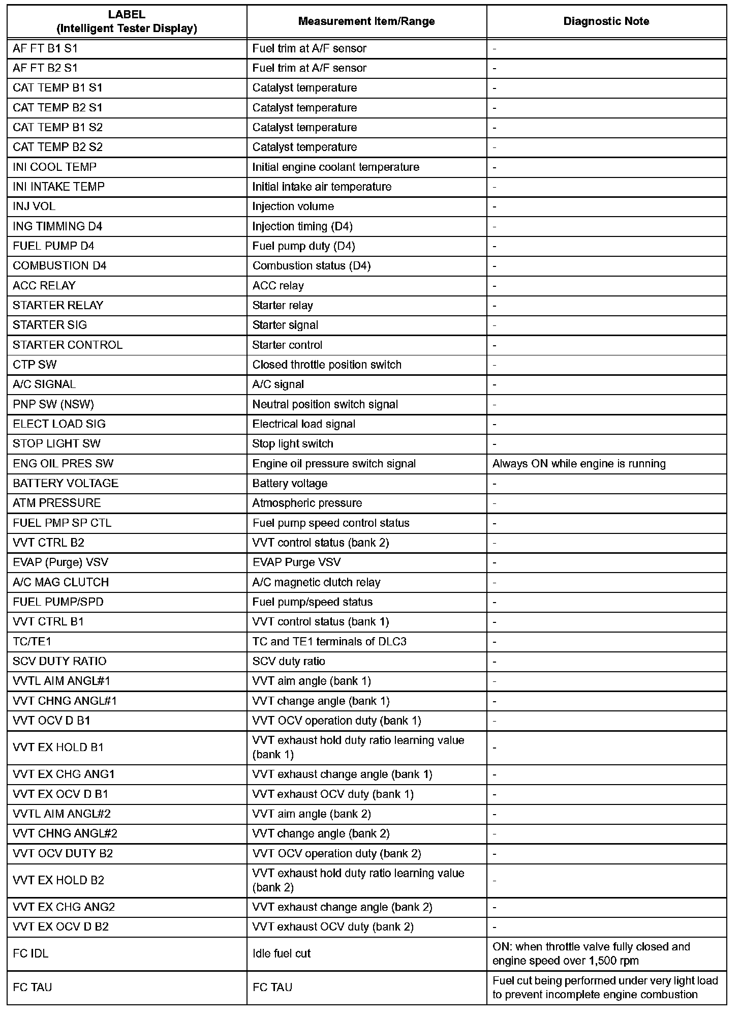 2. LIST OF FREEZE FRAME DATA