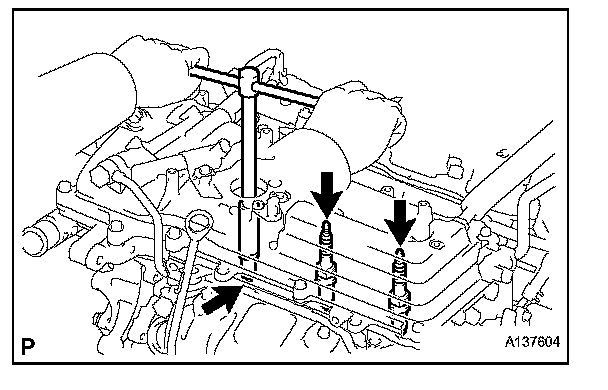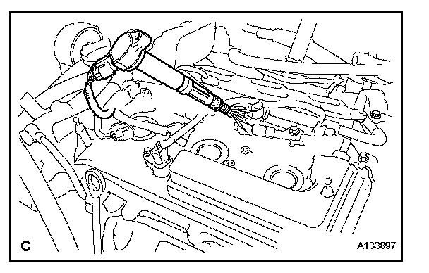 4. Using a 16 mm (0.63 in.) plug wrench, remove the 6 spark plugs.