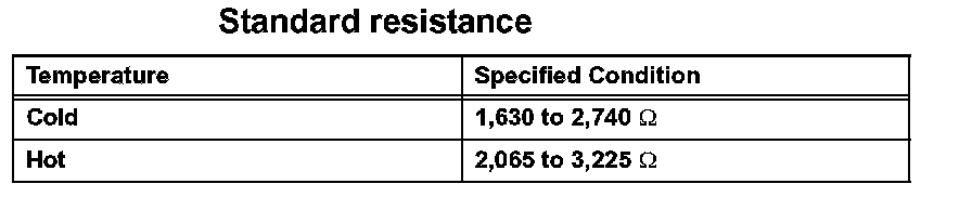 ON-VEHICLE INSPECTIONNOTE: In this section, the terms "cold" and "hot" refer to the temperature of the coils. "Cold" means approximately - 10°C (14°F) to 50°C (122°F). "HOT" means approximately 50°C (122°F) to 100°C (212°F).