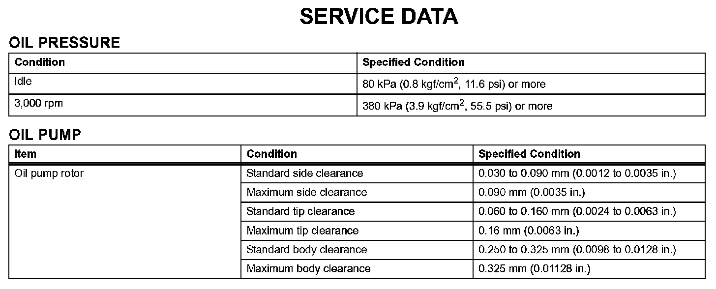 Lubrication - Service Data: