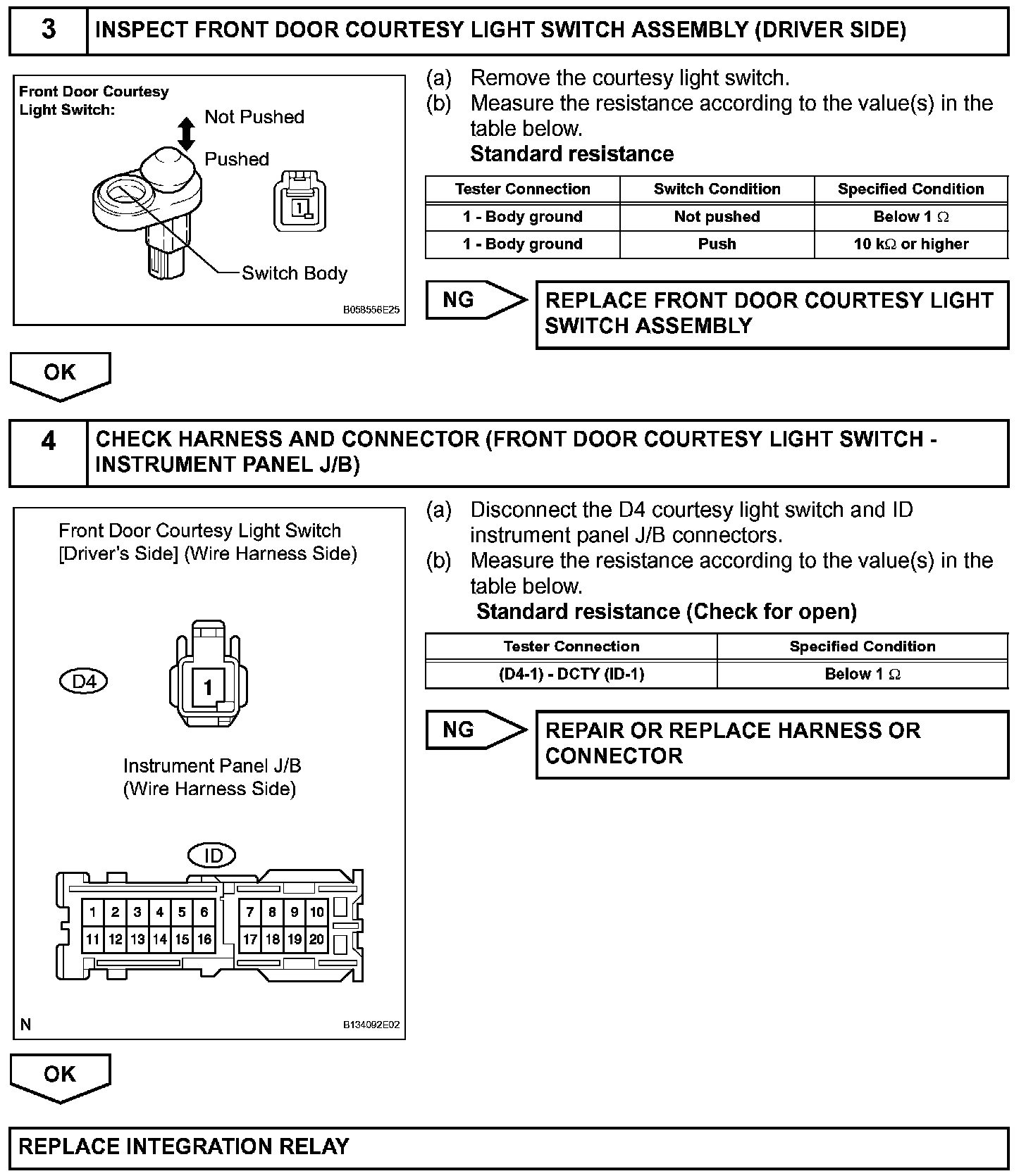 The unlock warning switch turns on when the key is inserted into the ignition key cylinder and the door courtesy switch turns on when the driver side door is opened. The integration relay monitors the condition of both switches. If the integration relay detects that both the unlock warning switch and door courtesy switch are on, the integration relay prevents door lock operations so that the key cannot be locked in the vehicle.