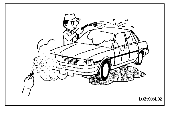 - Never sprinkle water directly into the engine compartment. Indirectly change the temperature and humidity by spraying water onto the front of the radiator.