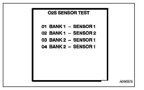 h. Select the desired HO2 sensor from the list and press the ENTER button (a screen such as that shown on the illustration appears).