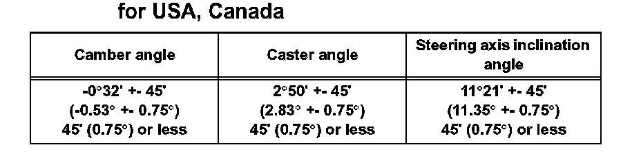 Camber, Caster, And Steering Axis Inclination For USA, Canada: