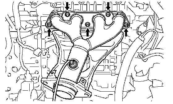 Install a new gasket and the exhaust manifold with the 5 nuts.