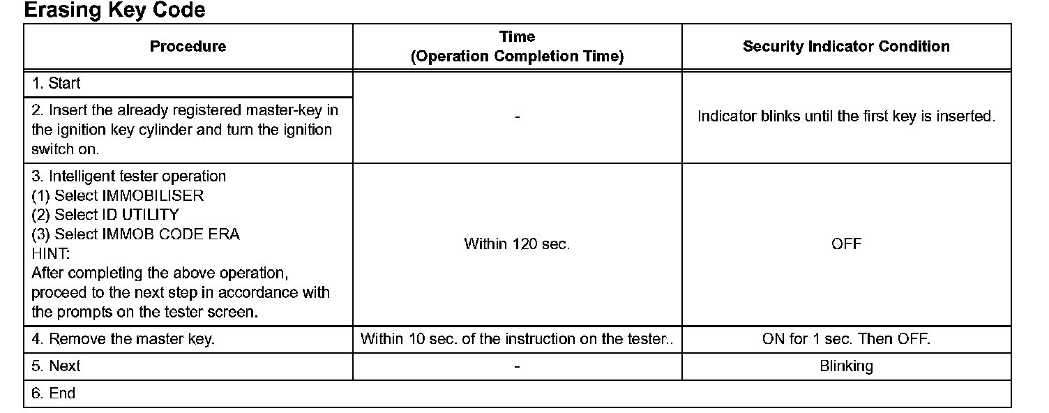 HINT: The key has 2 codes: The key code (Immobilizer code) and the wireless code. Both of these codes need to be registered. Refer the wireless code registration procedures.