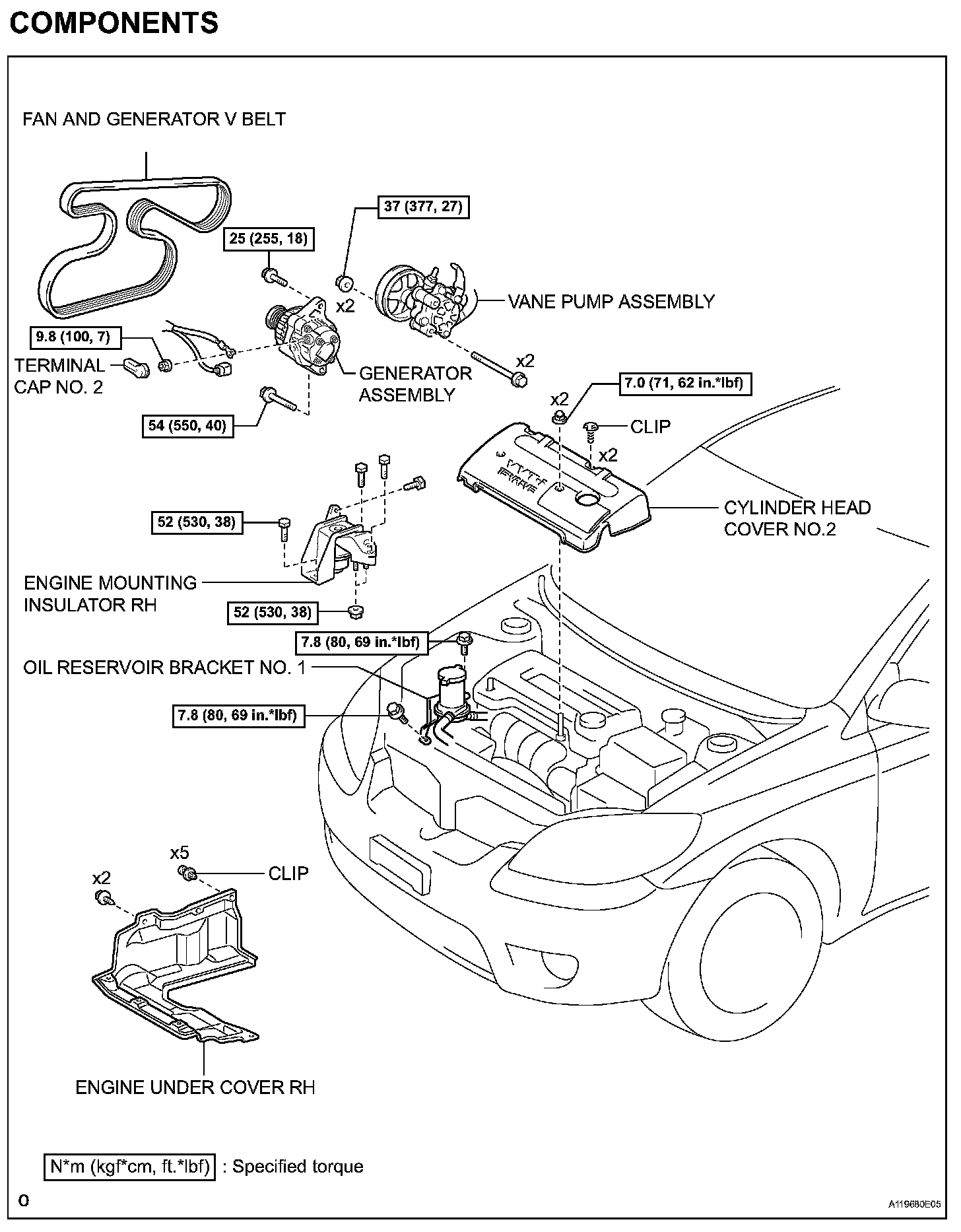 Bolt B 9.0 N*m (92 kgf*cm, 80 in.*lbf)
