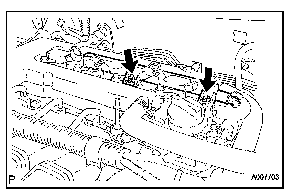 (a) Remove the 2 nuts and 2 clips, then remove the cylinder head cover No. 2.