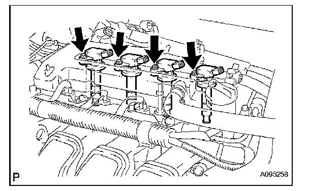 (c) Remove the 4 bolts, then remove the 4 ignition coils.