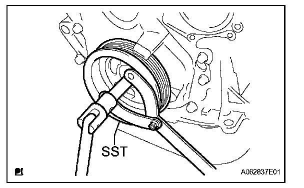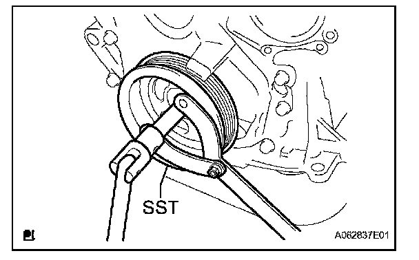 (a) Align the pulley set key with the key groove of the crankshaft pulley, then slide on the crankshaft pulley.