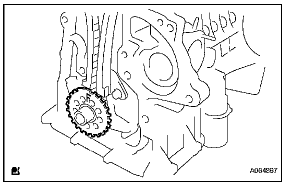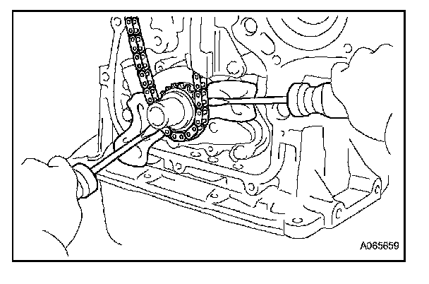 (a) Using 2 screwdrivers, pry out the chain with the crankshaft timing gear, as shown in the illustration.