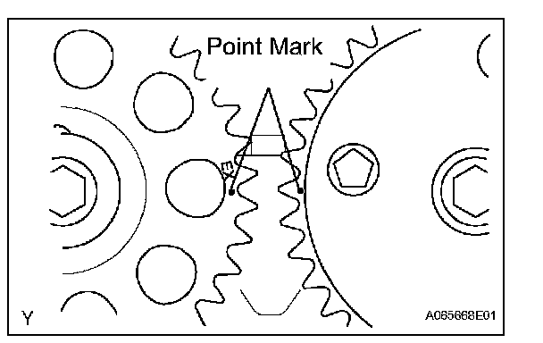 (1) Turn the hexagonal wrench head portion of the camshafts until the point marks of the 2 camshaft timing gears are aligned.
