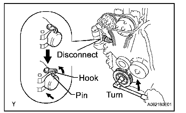 (c) Turn the crankshaft counterclockwise to disconnect the plunger knock pin from the hook.