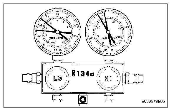 ON-VEHICLE INSPECTION1. INSPECT REFRIGERANT PRESSURE WITH MANIFOLD GAUGE SET