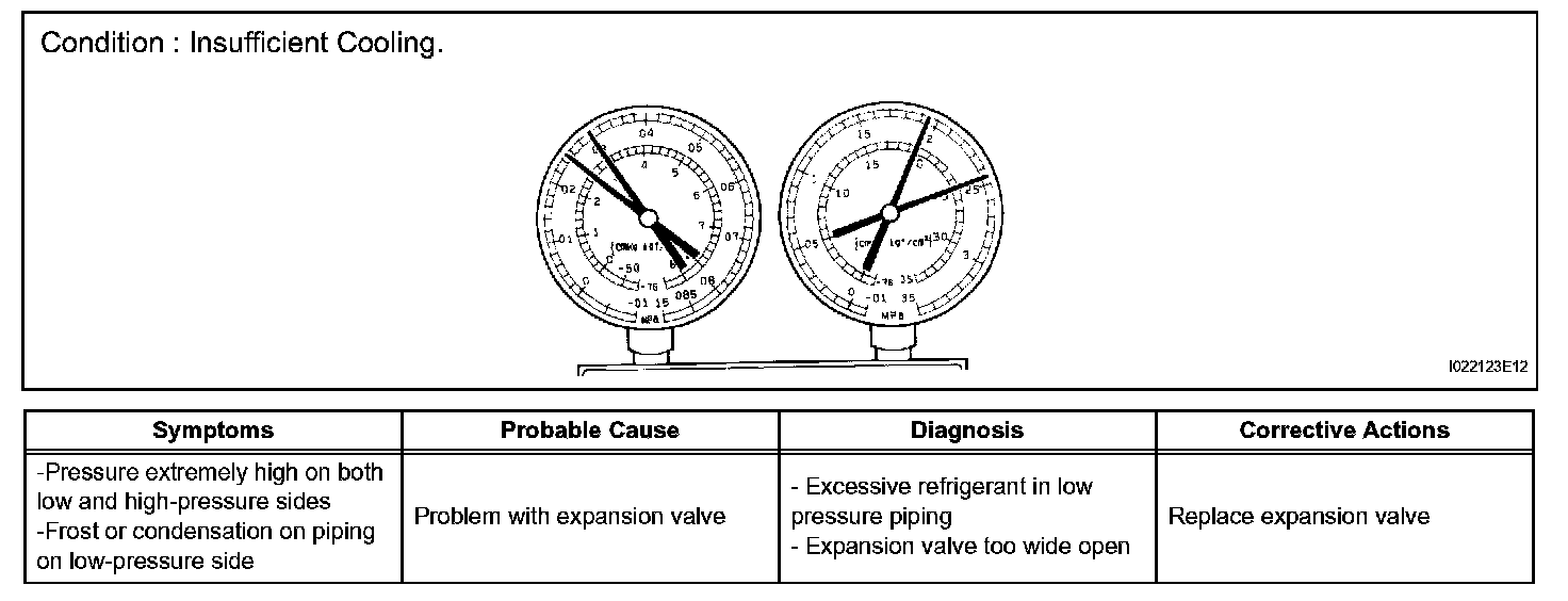 8. The A/C system does not function effectively due to an expansion valve malfunction.