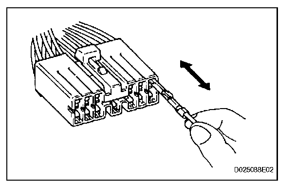 2. Checking when a connector is disconnected: Check by pulling the wire harness lightly from the backside of the connector. Look for unlatched terminals, missing terminals, loose crimps or broken conductor wires. Check visually for corrosion, metallic or foreign matter and water, and bent, rusted, overheated, contaminated, or deformed terminals.