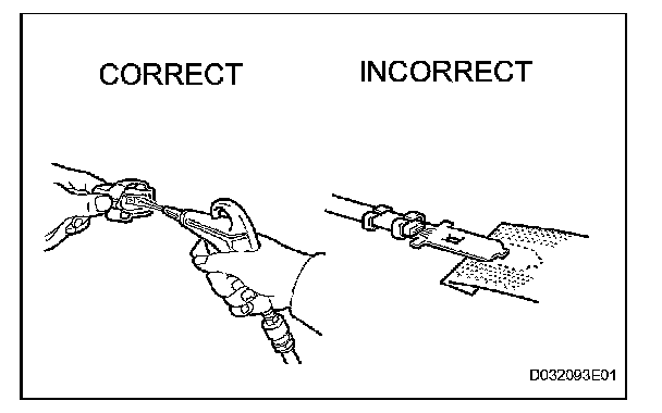 2. Never twist, pull or slacken the wire harness more than necessary.