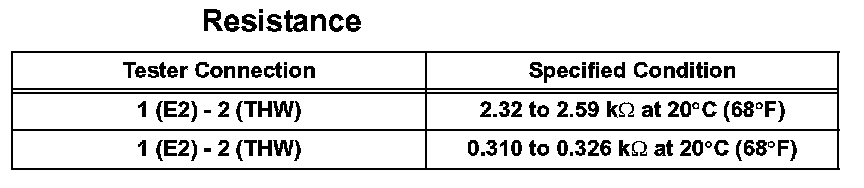 NOTE: If checking the engine coolant temperature sensor in water, be careful not to allow water to intrude into the terminals. After checking, wipe up water on the engine coolant temperature sensor.